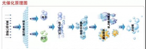 簡單來說,光催化技術是將以納米及二氧化鈦為代表的具有光催化功能的光半導體材料涂在基材表面,在紫外線的作用下產生強烈催化降解功能,降解空氣中有毒有害氣體。