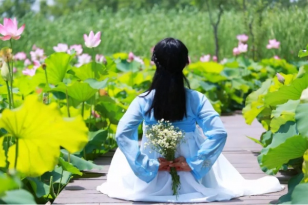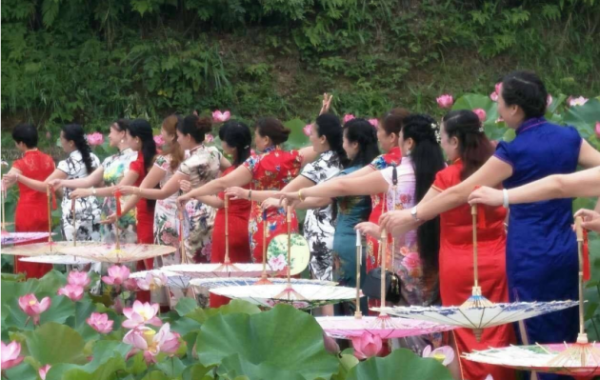 身著旗袍走在荷花池邊,旗袍雅韻風姿翩翩~