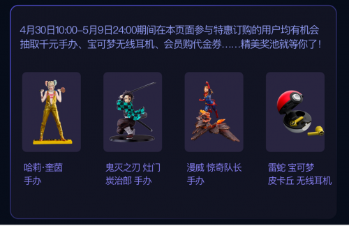 本次活動的獎品也是誠意十足!有1000元以上的熱門游戲手辦,如鬼滅之刃灶門炭治郎手辦,漫威驚奇隊長手辦,哈莉·奎茵手辦等等,都是小電視用戶的心愛之物。也有千元以上的游戲耳機,還有電視大會員季卡、月卡等你抱回家!此次活動對所有的小電視用戶一視同仁,不管你是新用戶還是已經(jīng)是會員,都可以參與。狂歡趴活動仍然在如火如荼的進行中,快去get你的活動福利吧。