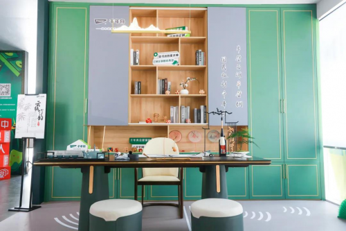 「云棲竹韻」系列定制書柜清新健康的“一抹西湖綠”使得每一位觀眾駐足欣賞,在這個空間中感受到綠色健康的理想居所與美好生活。