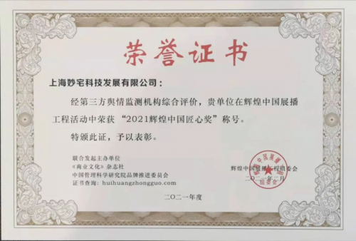 為慶祝建黨100周年,“輝煌中國展播工程”活動在北京隆重舉行。上海妙宅憑借多年來在促進健康產(chǎn)業(yè)發(fā)展、引領(lǐng)行業(yè)規(guī)范、增強民族品牌自信等方面所做出的貢獻,喜獲“2021輝煌中國匠心獎”榮譽稱號。
