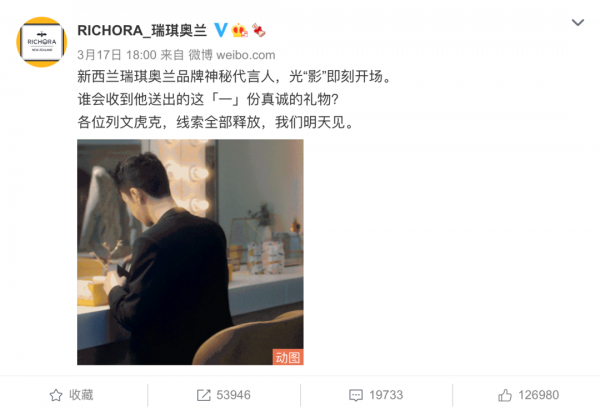 為逆轉(zhuǎn)過往品牌官宣前粉絲熱情低、互動少的狀態(tài),瑞琪奧蘭創(chuàng)意顛覆以往簡單的圖文官宣預(yù)熱,透過飯愛豆對王一博粉絲喜好的了解,借力代言人顏值直擊粉絲心臟,精準(zhǔn)抓住手、喉、眼、背影四大蘇點(diǎn),打造【攜手篇】、【等“喉”篇】、【耀眼篇】、【光影篇】四個特寫動圖造成直觀視覺沖擊,使得代言人未正式官宣即吸引到大量粉絲關(guān)注,4條預(yù)熱微博轉(zhuǎn)評贊收獲近100萬互動量。