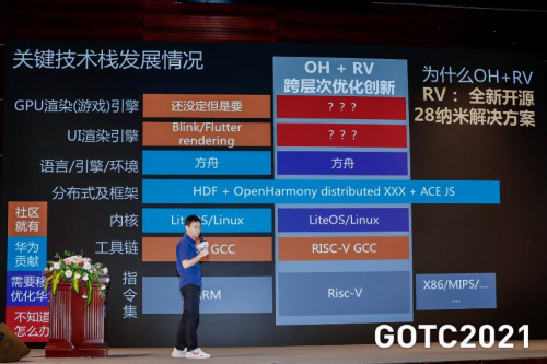 說到國內的開源項目,OpenHarmony 無疑是今年最受國人關注的明星項目之一。OpenHarmony 項目群工作委員會執行總監羅未也受邀參加本次峰會,為觀眾介紹了 OpenHarmony 項目目前的發展情況,并透露了一個振奮人心的消息 —— 基于 OpenHarmony、RISC-V 等開源技術構建屬于中國自己的全技術棧,是團隊的宏大目標,并且目前已經在推進這項偉大的工作。“接下來可能就是看看我們能夠把組織工作做好,我們能把協同協同好,我們從政策層面、產業層面,各個領導部門能夠在這件事情上形成一股合力,能夠形成一股利于我們產業界團結的方案。”