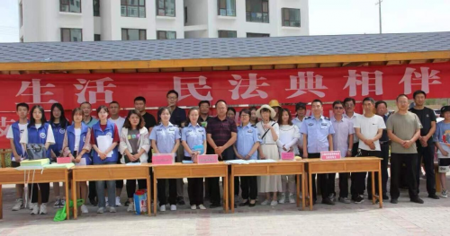 圖為青年學(xué)生志愿者與會(huì)寧縣司法局工作人員、律師和部分社區(qū)群眾在“普法宣講”活動(dòng)現(xiàn)場(chǎng)的合影