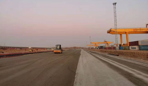 霍爾果斯口岸站路基碾壓施工