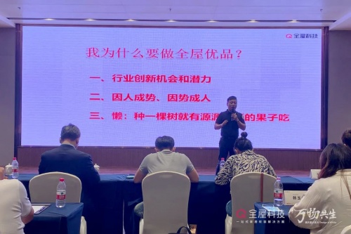 方有成以“我為什么要做全屋優(yōu)品”開(kāi)題,從多方面闡述了家居行業(yè)的創(chuàng)新機(jī)會(huì)和與全屋優(yōu)品的潛力,方總還詼諧的說(shuō)到正是因?yàn)椤皯小保驗(yàn)橹幌敕N一棵樹(shù)就想有源源不斷的果子吃,所以選擇全屋優(yōu)品才是“最優(yōu)解”。