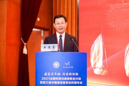 (圖)中國康復醫學會黨委書記牛恩喜宣讀《關于2021年度中國康復醫學會科普示范基地評審結果的通報》