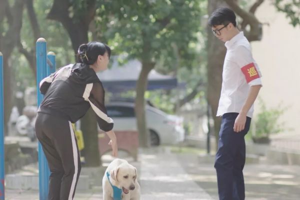 注意到有人遛狗沒拴狗繩,男主急忙走過去規勸,狗主人聽完非常不耐煩,但男主依然貼心地幫忙把狗繩系好,并遞到狗主人手中。