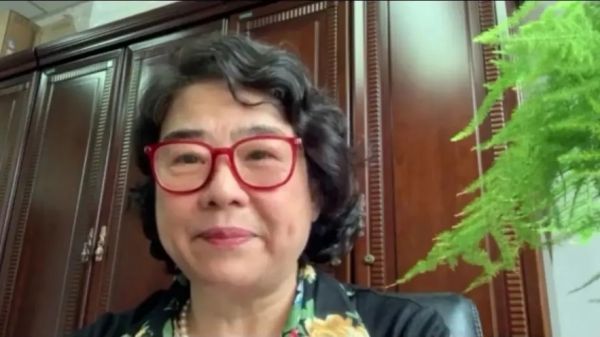 ▲中國照明電器協會理事長劉升平女士也通過視頻為陽光照明送來美好的祝愿