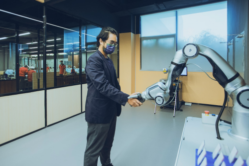 周大福珠寶執行董事鄭志剛,近期于社交平臺微博上傳一則動態,其中一張圖片展示他正與一只 機械手“握手”。