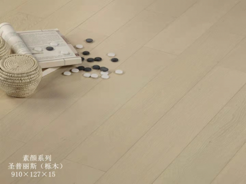 紅利素顏系列圣普麗斯,奶油色的實木復合地板賦予了木地板溫度,干凈溫柔的原木色與溫潤的木質觸感,讓家始終散發著暖融融的自然氣息。