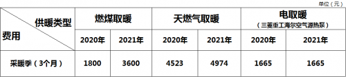 我們曾算過一筆經濟賬,按照目前價格計算(煤炭和天然氣價格還在持續增長中),整個取暖季使用以電驅動的三菱重工海爾空氣源熱泵,費用比燃煤取暖至少節省1/2以上,比天然氣取暖至少節省2/3!