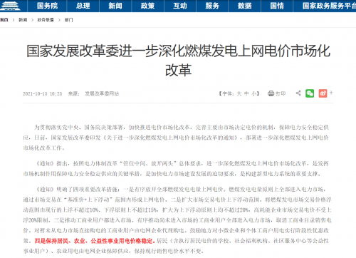 近日,國家發改委發布《關于進一步深化燃煤發電上網電價市場化改革的通知》,明確指出民生用電不漲價,給我們吃了一顆定心丸!