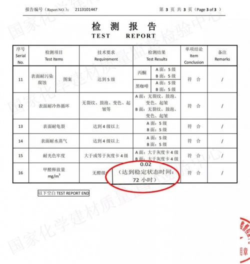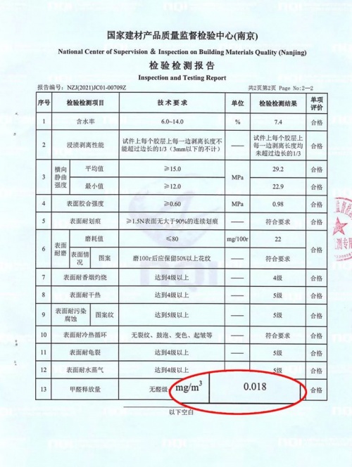 圖為千年舟天然豆香生態板檢測報告