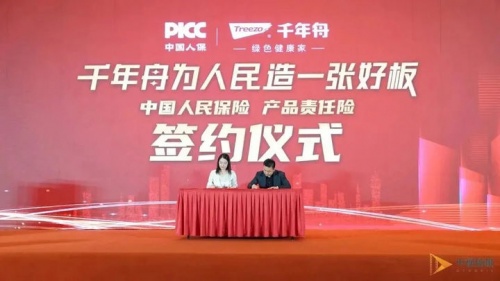 隨著中國消費水平的不斷升級,消費者對優質產品的需求也不斷增加,而企業產品通過保險承保的方式可以證明產品本身的質量和安全。經過嚴格考察,層層把關,千年舟旗下全線產品順利通過中國人保審核,在未來三年,中國人保將為千年舟全部板材產品承保產品責任險,為消費者保駕護航。
