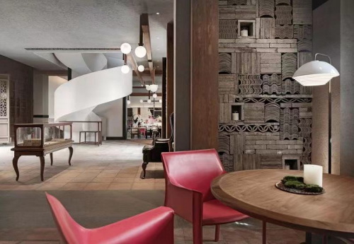 京劇藝術融匯于清中晚,盛于民初,近代西方的殖民化色彩、新民主思潮、東方封建傳統,都在這個時期碰撞、交融并五彩斑斕。在古老的清代建筑里,制造新與舊、結構與裝飾、東西方文化沖突。用碎片的、解構的方式來回應那個時代和詮釋戲劇沖突的主題,不是形式化具體的一個個只供瞻仰的戲曲元素,而是把印象分解重構,形成邏輯的關聯,重塑事物的印象,讓過去和現在對話,重組一個適合當下的住宿空間。以“附生”的方式,用“盒子”構成,把新的功能和組織嵌入古建結構中,裝飾依托功能,被裝置式的置入,營造“共生”關系,而不是拆移式的“重塑”。傳統的斗拱結構,結合寓意京劇鳳冠上的云珠及劇院后臺化妝燈的燈具,形成串聯所有不同空間的裝飾線索,并成為空間結構的一部分。戲曲的場景、人物、色彩被抽象化,運用到家具、陳設、燈具、導視系統之中。塑造一個“曖昧”,而主題不具體具象的空間,一如案名《西廂和中國傳統曲目《西廂記》的多重解讀。