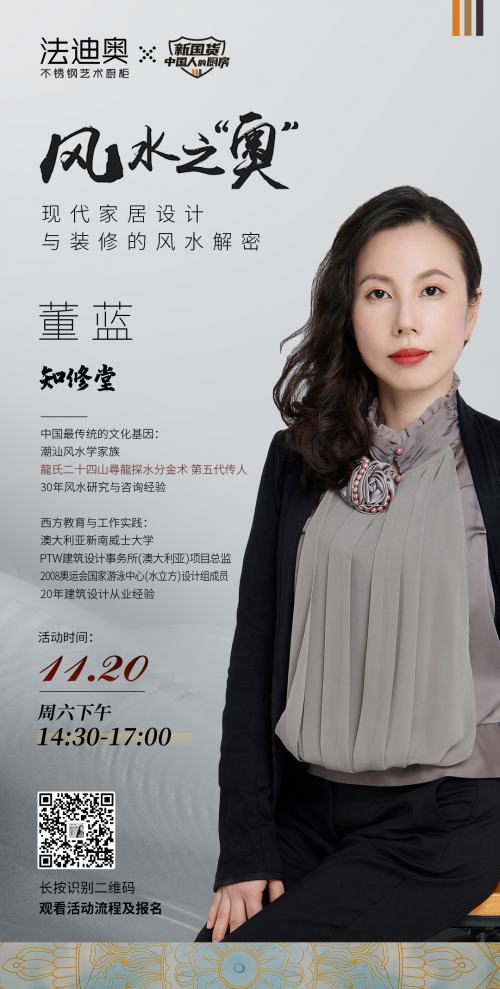 繼10月法迪奧攜手保利天悅舉辦第一場家居沙龍后,特邀嘉賓董藍老師的《東方家居藝術》分享廣受業主好評。本次活動再次邀請了董老師出席,分享保利天悅180㎡戶型的設計哲學、生活避忌以及化解方法。