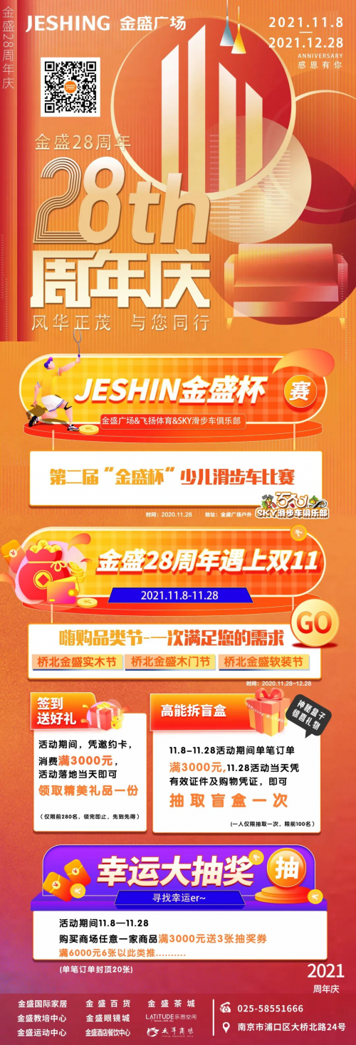 橋北金盛啟動金盛28周年慶生季,為致謝陪伴了28載的消費者,橋北店推出年度超值福利“28周年慶特權”。