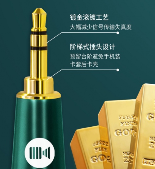 采用階梯式插頭設計,預留臺階避免手機裝卡套后卡殼,采用成本更高的鍍金滾鍍工藝,大幅度減少信號傳輸失真度。