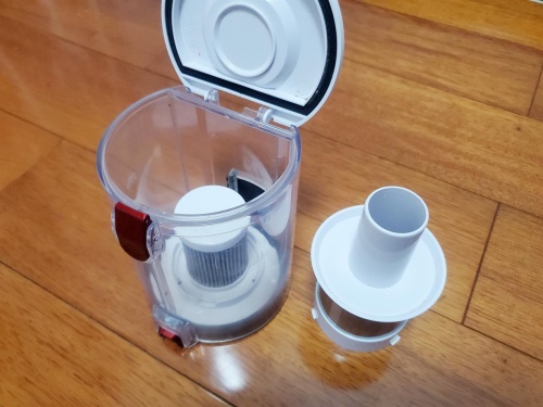塵盒的清洗是本人使用過的吸塵器里最好清理的一個。按下一鍵傾倒按鈕可以傾倒里面的灰塵,完全不會臟手,還可拿下來直接使用清水沖洗,比那些需要手動拆機的吸塵器方便很多。塵盒的容量升級到了0.8L,一般來說,清潔450㎡的面積倒灰一次即可,也就是說,對于大多數(shù)家庭來說,使用四到五次才倒灰一次,避免了頻繁倒灰的麻煩。