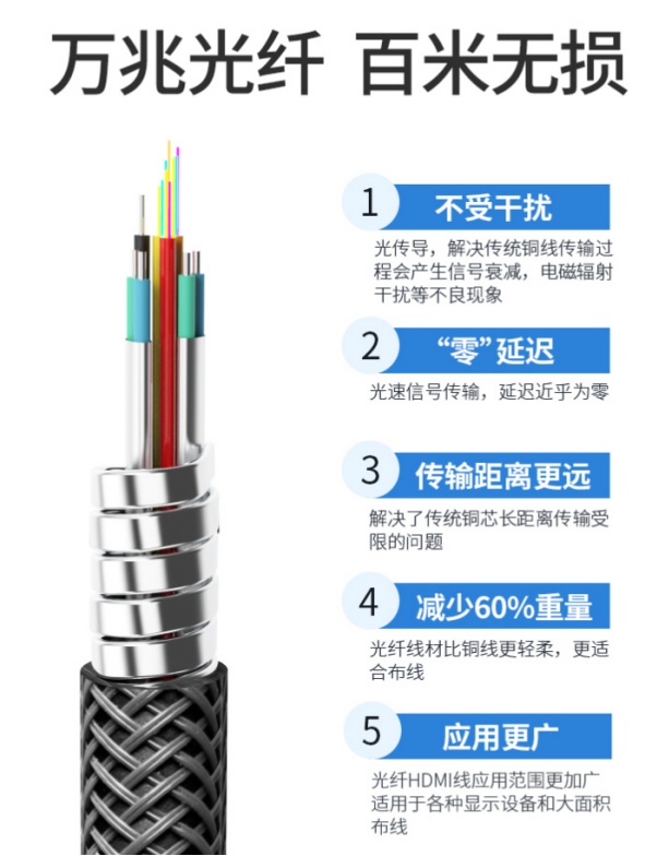 作為HDMI線高端品牌,開博爾是光纖HDMI線的研發者、引導者、先行者,堅持高品質,15年來一直專注于線材的質量和工藝,做精品傳輸線,率先在行業內推出光纖HDMI,成功將長距離高清視頻傳輸提升到333米。