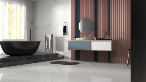 冰川白的自然紋理、包容色調和優雅質感,能夠適應墻地面、臺面、裝飾面等不同家裝場景的不同的需求,能夠輕松搭配簡約風、現代風、新中式等多種風格,打造高級且舒適的整屋空間定制私屬。