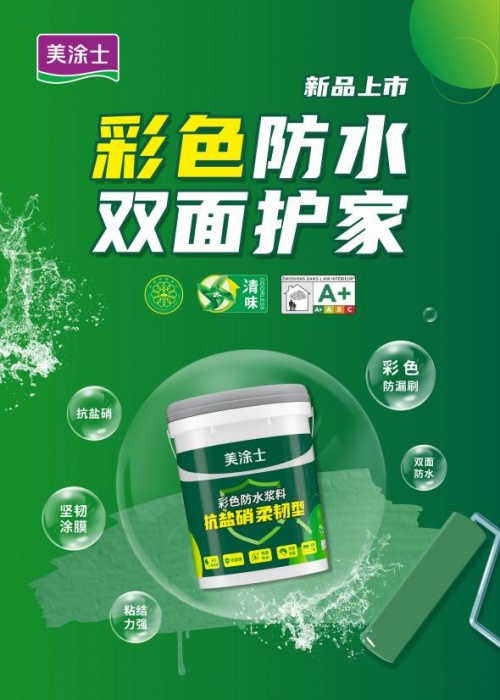 為了防止日后的生活起居中發生滲水、泛堿的情況,美涂士推出了綠色環保的美涂士抗鹽硝彩色柔韌型防水。通過涂刷抗鹽硝彩色柔韌型防水,讓形成的防水層和基層有極強的粘結力,還能阻礙水分在基層中的滲透,故而能夠起到雙面防水的功效,適合衛生間、廚房、陽臺等部位的防水、防潮,地下室及外墻等工程的背水面防滲、防潮處理。