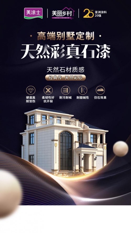 2021年7月初,住建部發布的關于《房屋建筑和市政基礎設施工程淘汰危及生產安全施工工藝、設備和材料目錄(第一批)(征求意見稿)》,其中提出:不得用于外墻飾面磚黏貼高度高于15m的工程,同時提出了采用外墻涂料作為替代施工材料的建議。深耕涂料行業數十載,美涂士一直專注于外墻漆的科研、生產、銷售與服務施工。外墻漆市場的走熱,也給美涂士外墻漆,尤其是美涂士天然彩真石漆的發展帶來了機遇。