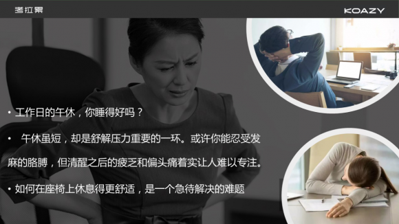 現在年輕人大多過著兩點一線的生活,家到公司,宿舍到教學樓。快節奏的速度和生活學習的壓力,讓睡眠、心理健康幾乎必定有或大或小的問題。一天除了在寢室或家里,就是在辦公室或圖書館教學樓,而考拉累的頭懶枕,就是為了解決坐的舒服和趴著睡的問題。