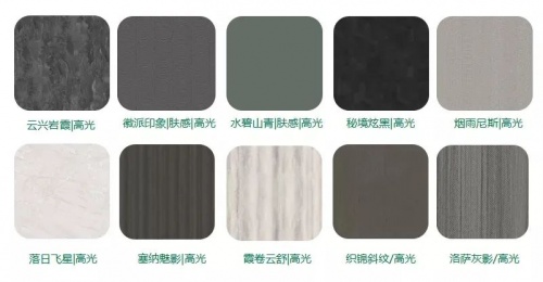 千年舟品牌的PET鉑晶板包含四個系列。比如它的高光系列——擁有鏡面效果,給人明亮華麗的感覺;膚感系列——啞光質(zhì)地,絲滑似肌膚,擁有舒適的親膚體驗感的同時,又有高級感;壓感系列—擁有很好的立體效果,滿足現(xiàn)代消費者個性化的需求;透明系列—雙貼千年舟高端花色TREEZO PRO系列紙張,在正面另壓貼一層透明PET膜皮,使原本就好看的花色紋理更加凸顯,擁有更好的視覺效果。