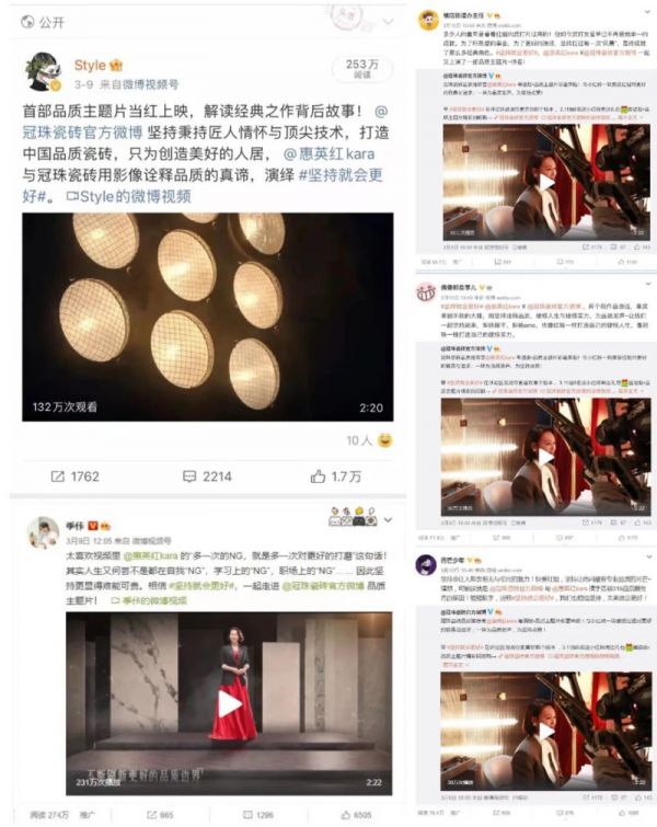 冠珠官方渠道發布后,緊接著通過短視頻、新聞稿件、微信推文、長圖、海報等形式鋪天蓋地的密集傳播,強化了品牌態度,為冠珠瓷磚線下終端“315品質服務月”活動積蓄熱度,大力造勢。