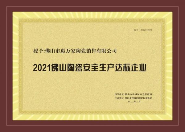惠萬家瓷磚作為行業(yè)龍頭新明珠旗下的實力品牌,憑借過硬的產(chǎn)品質(zhì)量和市場口碑,獲得了2022佛山陶瓷“共促消費公平”承諾品牌和2021佛山陶瓷安全生產(chǎn)達標企業(yè)兩項殊榮。