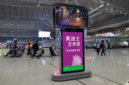 在擁擠又喜悅的五一出游路上,旅客在高鐵站內抬頭就能見到美涂士藝術漆廣告畫面,“綠地紫花”的視覺效果,“美涂士藝術漆 從底到面抗甲醛”的醒目字樣,以及熟悉的品牌印象,成為高鐵站里一道亮麗的風景線!