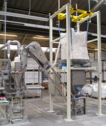 另一種是大袋開袋站是靠自身攜帶的起重設(shè)備將大袋(噸袋)吊裝到卸料機(jī)的機(jī)架上,不需用外界的幫助。